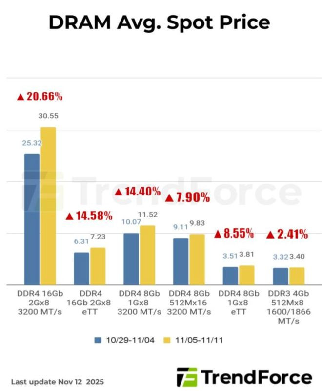 市场研究机构TrendForce预测,2025年第四季度DRAM(包括HBM芯片)的平均价格将较前一季度上涨50%至55%。